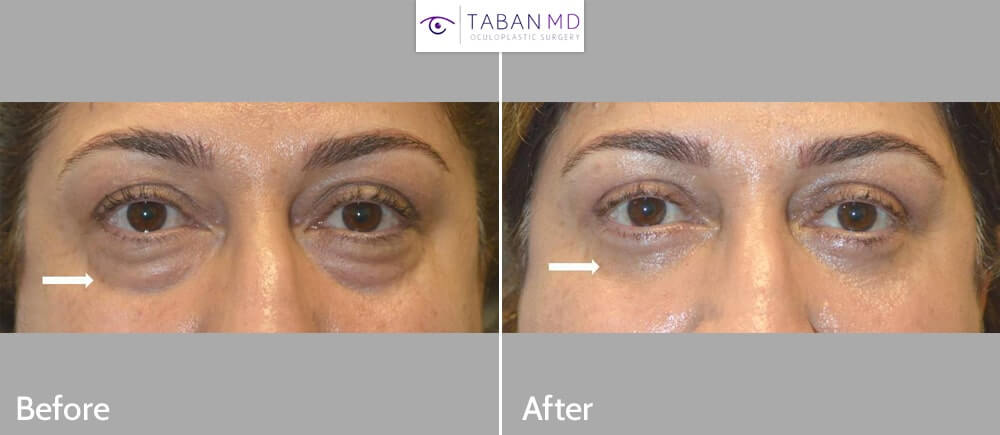 - 눈 아래 꺼짐으로 인한 고르지 않은 피부 라인
