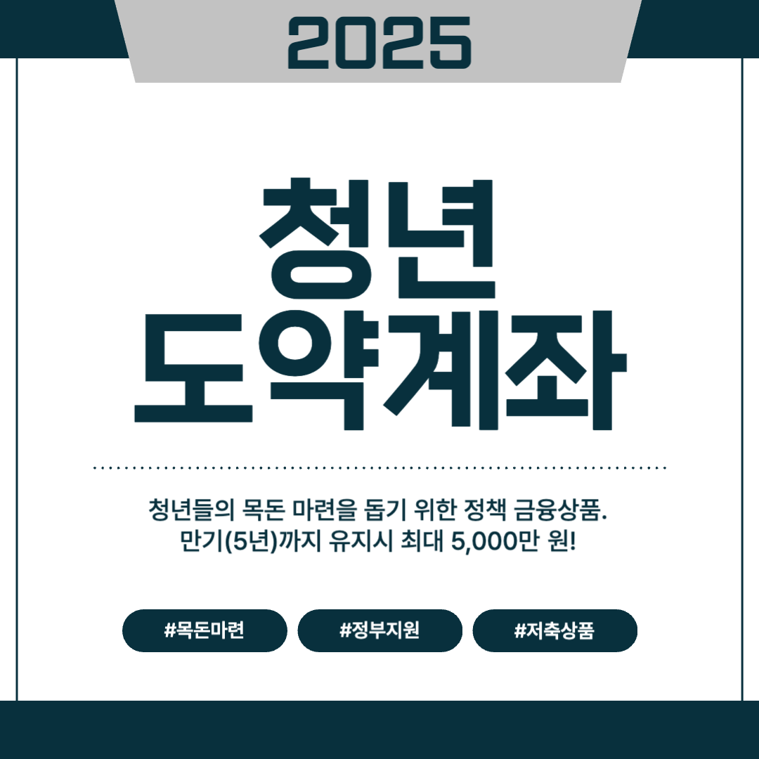 만 19세~34세 청년이 5년 동안 저축하면 최대 5,000만 원까지 목돈을 만들 수 있는 정부 지원 계좌입니다.